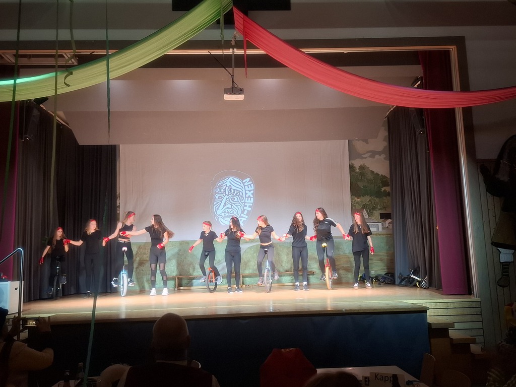 Mit tosendem Applaus und strahlenden Gesichtern wurde der Auftritt unserer Einradgruppe beim diesjährigen Bürgerball gefeiert. Mit beeindruckender Sicherheit, kreativen Formationen und spürbarer Freude am Fahren zeigten sie eine Darbietung, die das Publikum von der ersten bis zur letzten Sekunde fesselte.Man merkte sofort, wie viel Training, Teamgeist und Leidenschaft hinter dieser Performance stecken. Die Einradgruppe präsentierte sich nicht nur sportlich stark, sondern auch als eingeschworenes Team, das gemeinsam über sich hinauswächst.